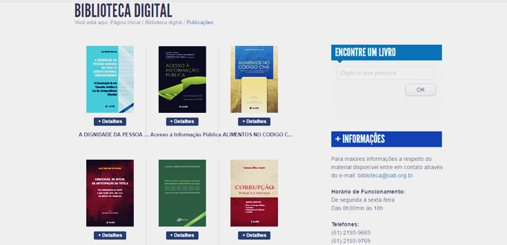O portal da biblioteca digital do conselho federal da OAB também é bem simples de ser utilizado. Nele, há vários e-books das mais variadas áreas do direito e também diversas edições da Revista Brasileira de Direito Processual.