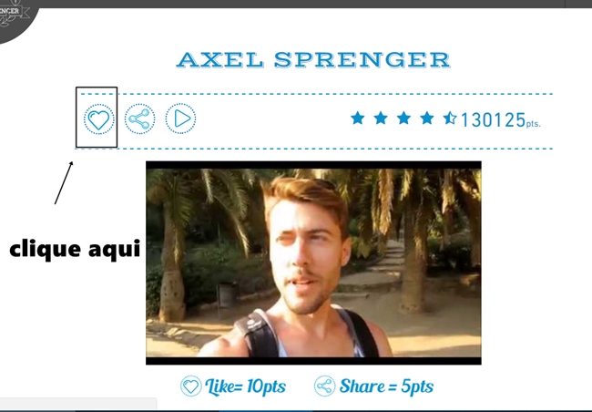 2. Role para baixo um pouquinho e clique no coração, clicando nele você poderá fazer login pelo facebook, email ou conta do google. Confirmando seu voto, você com seu clique terá concedido 10 pontos para o nosso amigo alemão!