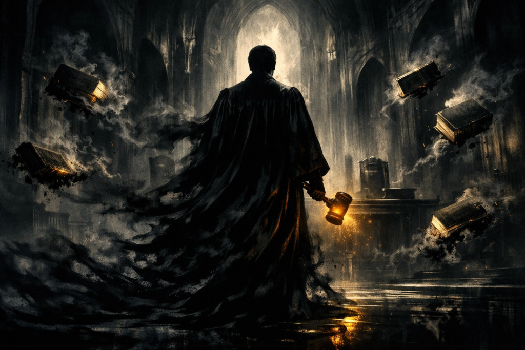 Kafka havia estudado direito na Universidade de Praga. Talvez por isso sua ficção seja, ainda hoje, a metáfora mais precisa do que a teoria jurídica chama de decisionismo judicial — esse fenômeno pelo qual a toga cobre não a razão do direito, mas a vontade de quem a veste.