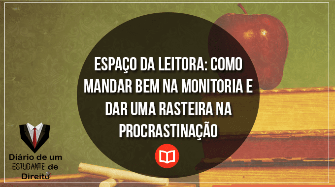 Olá!Boa tarde, Henrique!Acompanho o blog e suas postagens no face, ambos me ajudam muito! Obrigada por isso!Irei iniciar a monitoria em Direito Administrativo, já li seu post sobre quando vc foi monitor, mas gostaria de mais dicas, se vc tiver alguma, agradeço muito!Também gostaria de saber como procrastinar menos e ter um melhor rendimento, ando muito atarefada e ao mesmo tempo, sem foco! =(Tenha um ótimo domingo!