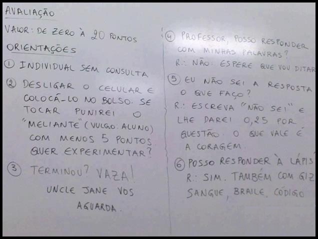 O jeito é acalmar os ânimos e se jogar nesse mundo perdido chamado semana de provas. Entretanto existe um mundo anexo a esse que é extremamente pior: O mundo da semana de entregas das notas. Aguarde os próximos capítulos… que poderão ter um final feliz ou não… Vai depender do(a) protagonista dessa história que está lendo isso tirar pelo menos a média, a tão sonhada média. Se vier um 10 é bom, mas a média é sempre a média, ela é a salvadora da pátria. Aguarde…. Boa sorte.
