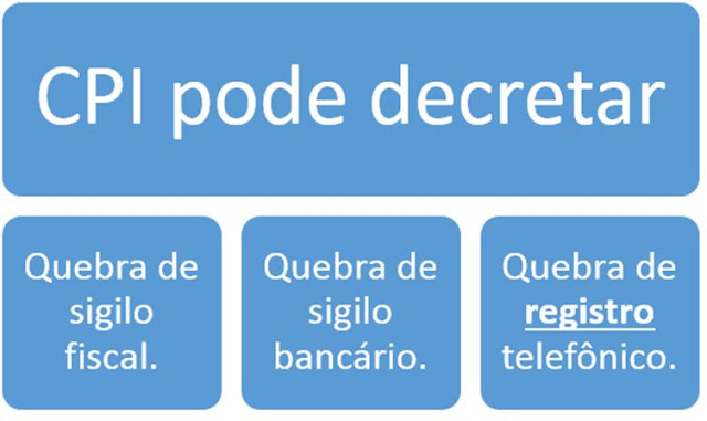 "CPis podem, sem necessidade de ordem judicial, determinar a ruptura dos segredos bancário, fiscal e de registros telefônicos de pessoas físicas ou jurídicas investigadas.