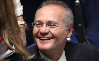 | Renan ri ao ser eleito presidente do Senado. Foto: Folha de SP |