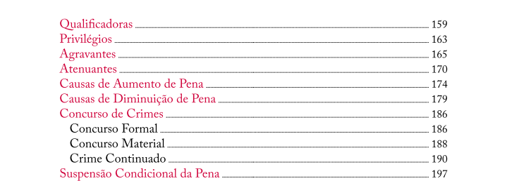 O primeiro ponto a ser destacado é a organização dos temas separados por assunto. O Sumário do e-book é bem semelhante ao que encontramos nos livros convencionais. Além disso, todos os temas elencados no sumário são “clicáveis”. Caso você clique no nome “suspensão condicional da pena” – contido no sumário – irá direto para a página que dá início à abordagem do tema. Bem prático, não é mesmo?