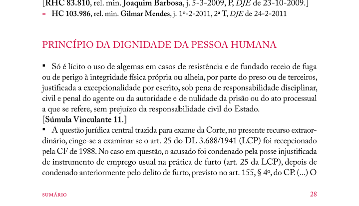O segundo ponto que também merece atenção diz respeito ao modo que o leitor deve utilizar o livro. O e-book dessa coletânea temática não é, e nem pretende ser, eminentemente doutrinário no sentido didático. Ele não vai detalhar os temas como um doutrinador faz em seu livro, mas sim apontar como aquele tema é visto pelo Supremo através da análise de casos reais. Desta forma, seu uso não substitui a leitura de livros, mas sim complementadando um toque realidade prática às teorias criminais vistas nos livros.